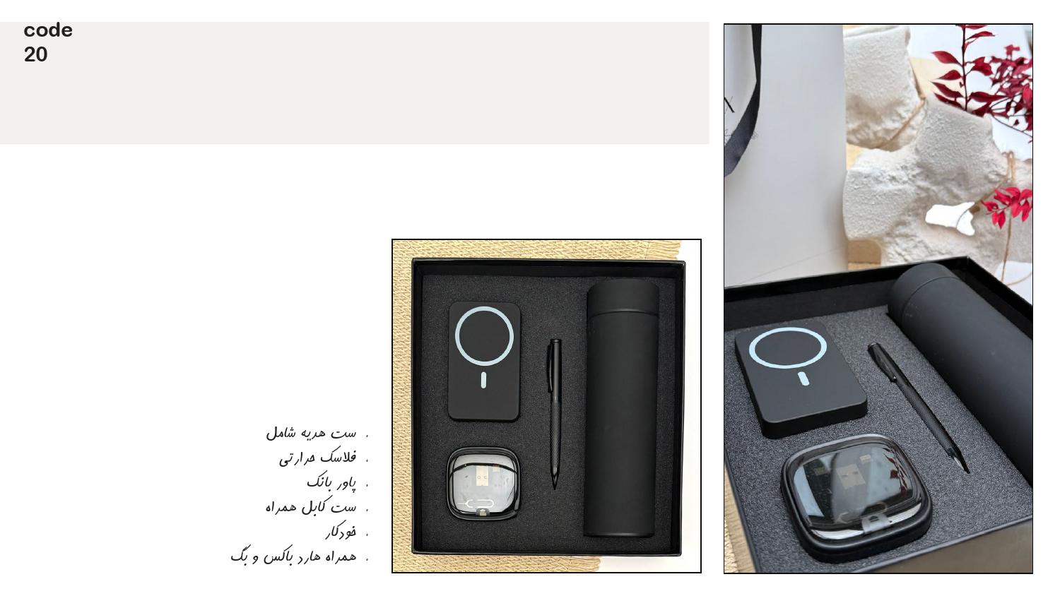 • اقلام همراه: پاوربانک فلاسک حرارتی ست کابل همراه خودکار
